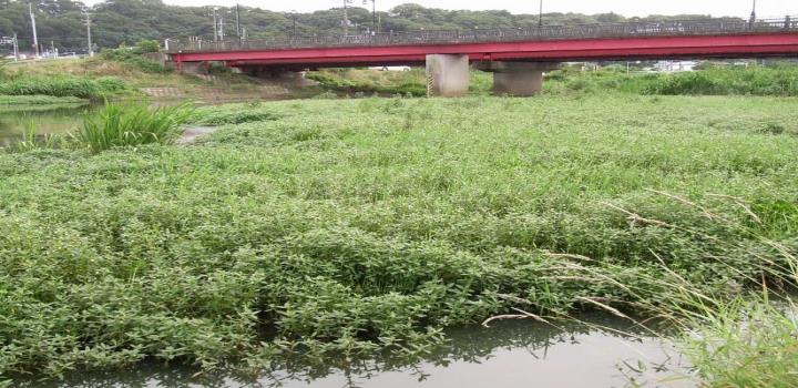 ナガエツルノゲイトウは、南米原産の多年草であり、川岸などの水辺や比較的浅い水底の土壌中に根を張り生育します。生態系や農業への悪影響の恐れがあり、「特定外来生物」に登録されています。