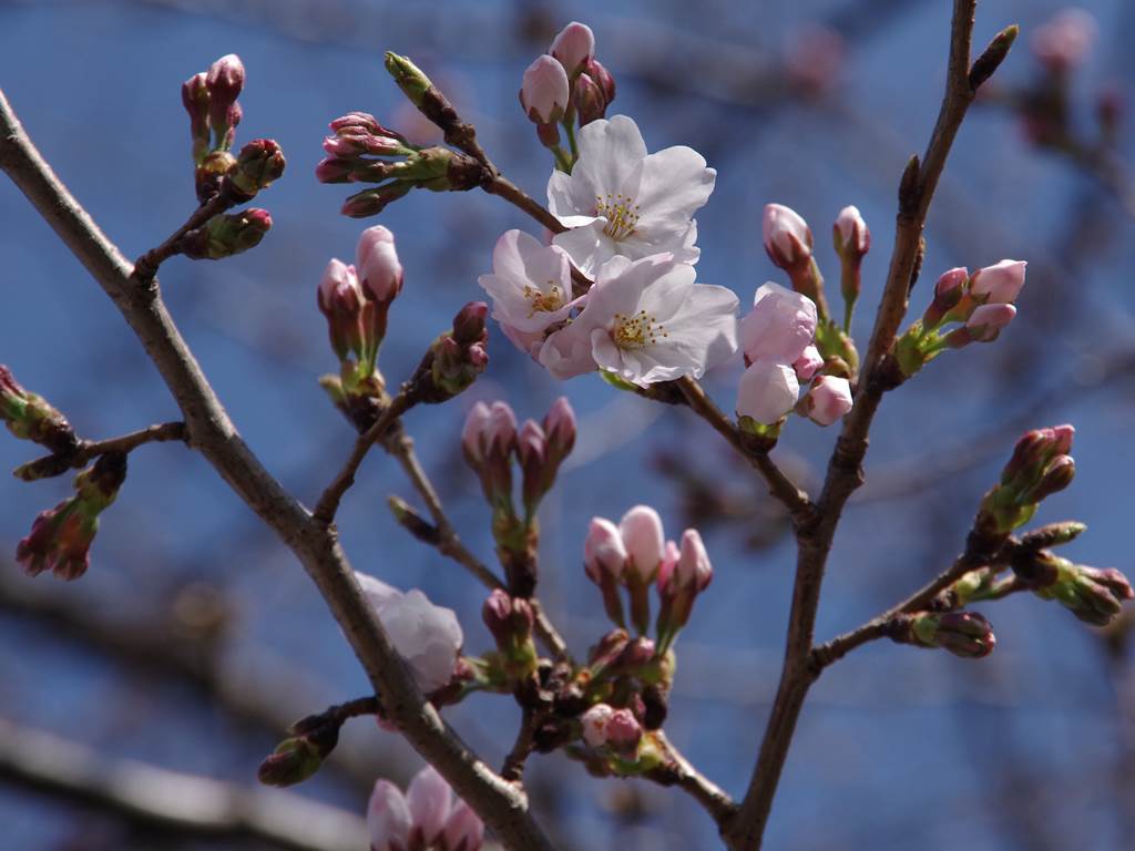 ちらほら咲き始めました。今日は気温が高めの予報ですので開花が進むのでは。