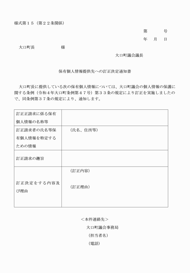 開示決定通知を行った旨の反対意見書提出者への通知書 | ||